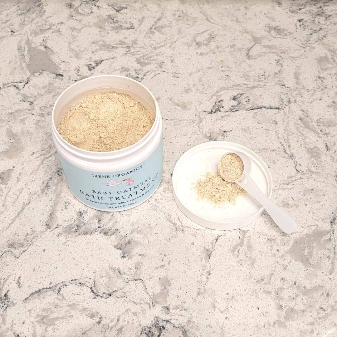 Hemos combinado los mejores ingredientes orgánicos y naturales para aliviar y calmar la picazón, enrojecimiento y sequedad causados por el eczema, piel seca, irritaciones menores en la piel y sarpullidos, e incluso quemaduras solares. Sin fragancias artificiales, conservantes o toxinas para garantizar que sean seguros para ti y tu bebé. La avena coloidal es conocida por ser extremadamente hidratante y ayuda a retener la humedad en la piel. Combinada con polvo de leche, polvo de raíz de malvavisco, polvo de manzanilla y polvo de caléndula, la convierte en la fórmula perfecta para calmar verdaderamente el enrojecimiento, la piel irritada y con picazón, eczema, psoriasis, quemaduras solares, picaduras de insectos y otras irritaciones de la piel. Irene Organics es un pequeño negocio propiedad de mujeres que ganó el premio a la Mejor Marca de Cuidado de la Piel para Bebés en el noreste de los Estados Unidos en 2022 y 2023. Irene Organics también ganó el Premio de Salud y Bienestar en 2024. Al apoyar a Irene Organics, no solo estás haciendo la elección más limpia y natural para ti y tu bebé, sino que también estás apoyando a un pequeño negocio propiedad de mamás y ayudando a Irene a difundir el mensaje de que productos naturales, libres de toxinas y conservantes son lo que cada padre y niño merece. No solo nos preocupan los ingredientes orgánicos, sino que también somos defensores del medio ambiente. Deja de comprar esos paquetes de baño de avena coloidal y usa el diseño de frasco de Irene Organics en su lugar. Utiliza tanto o tan poco como quieras en tu baño. Llena la bañera con agua tibia y agrega de 1 a 3 cucharadas del polvo mientras corre el agua. Remoja durante 15 minutos y asegúrate de enjuagar la bañera después de cualquier residuo. Para el alivio definitivo del eczema, aplica también la Pomada de Eczema o el Aceite para Bebés de Irene Organics después de hidratarte. Asegúrate de enjuagar tu bañera justo después para una limpieza más fácil!
